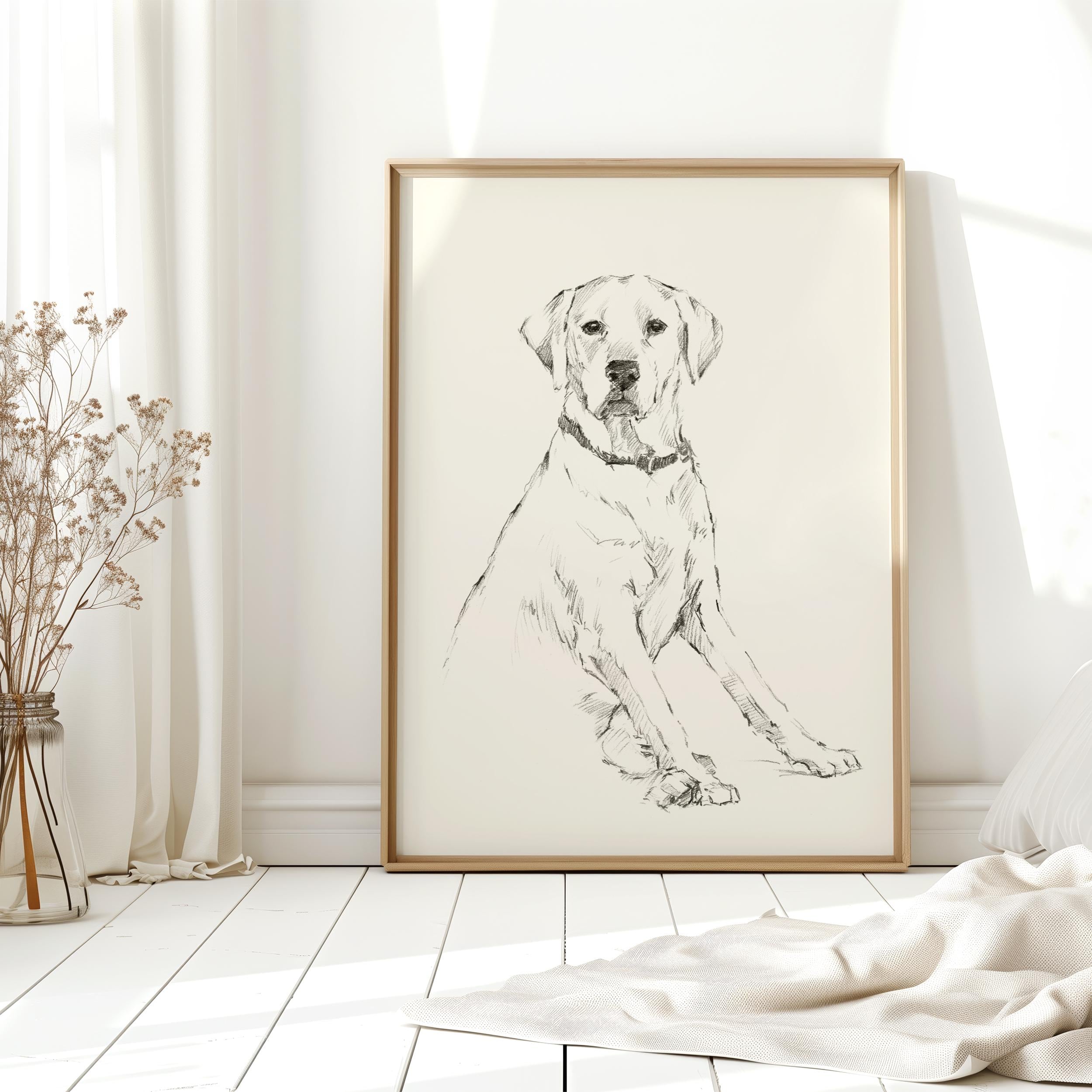 Enhance your home, nursery, or office with this sophisticated piece of animal art that captures the peaceful and endearing spirit of a Labrador Retriever. Perfect as a gift for dog lovers, pet memorials, or to elevate your nursery or living space with a touch of traditional, timeless art. Add this charming pencil sketch to your collection today and bring a bit of canine serenity into your environment!