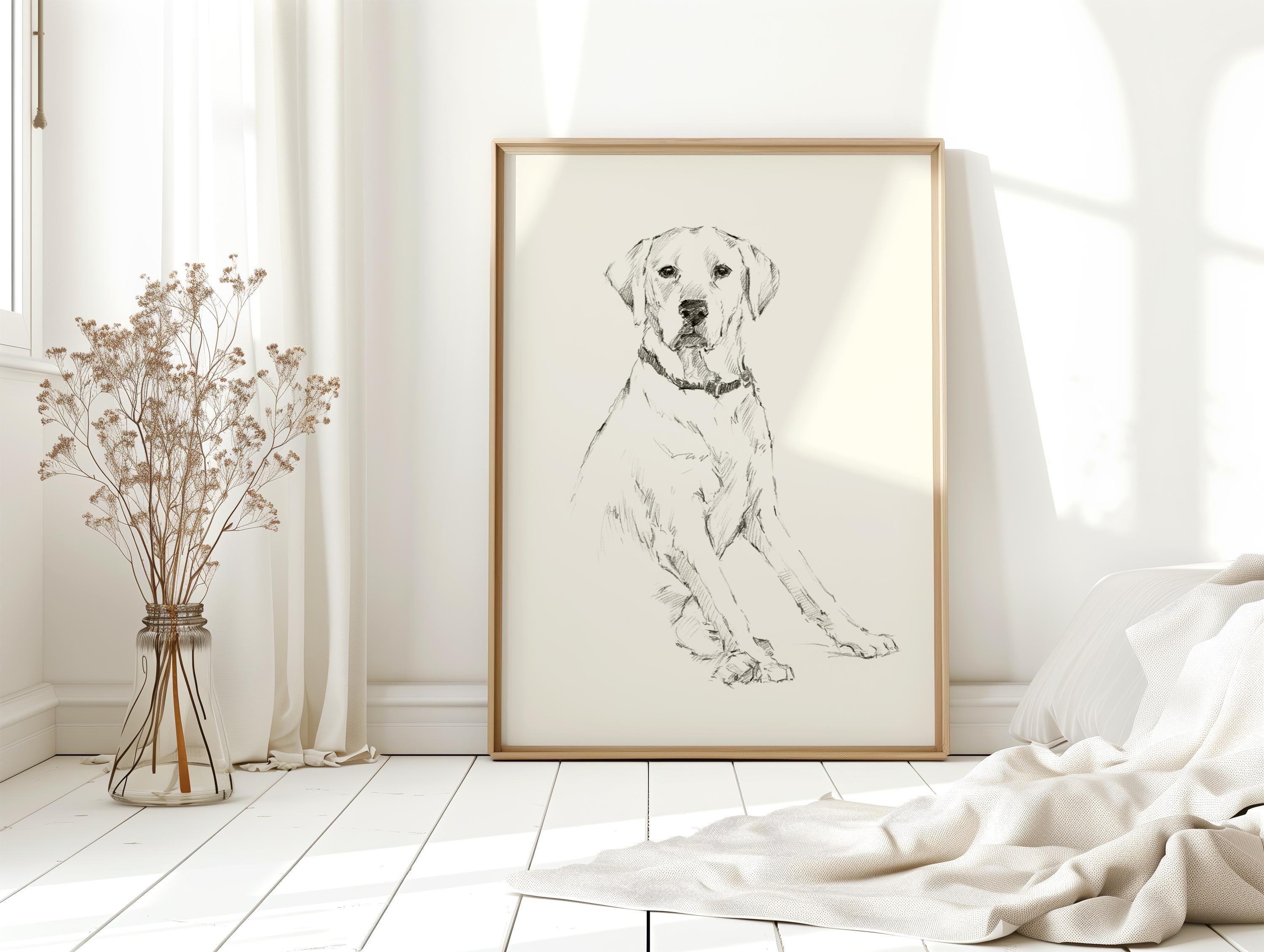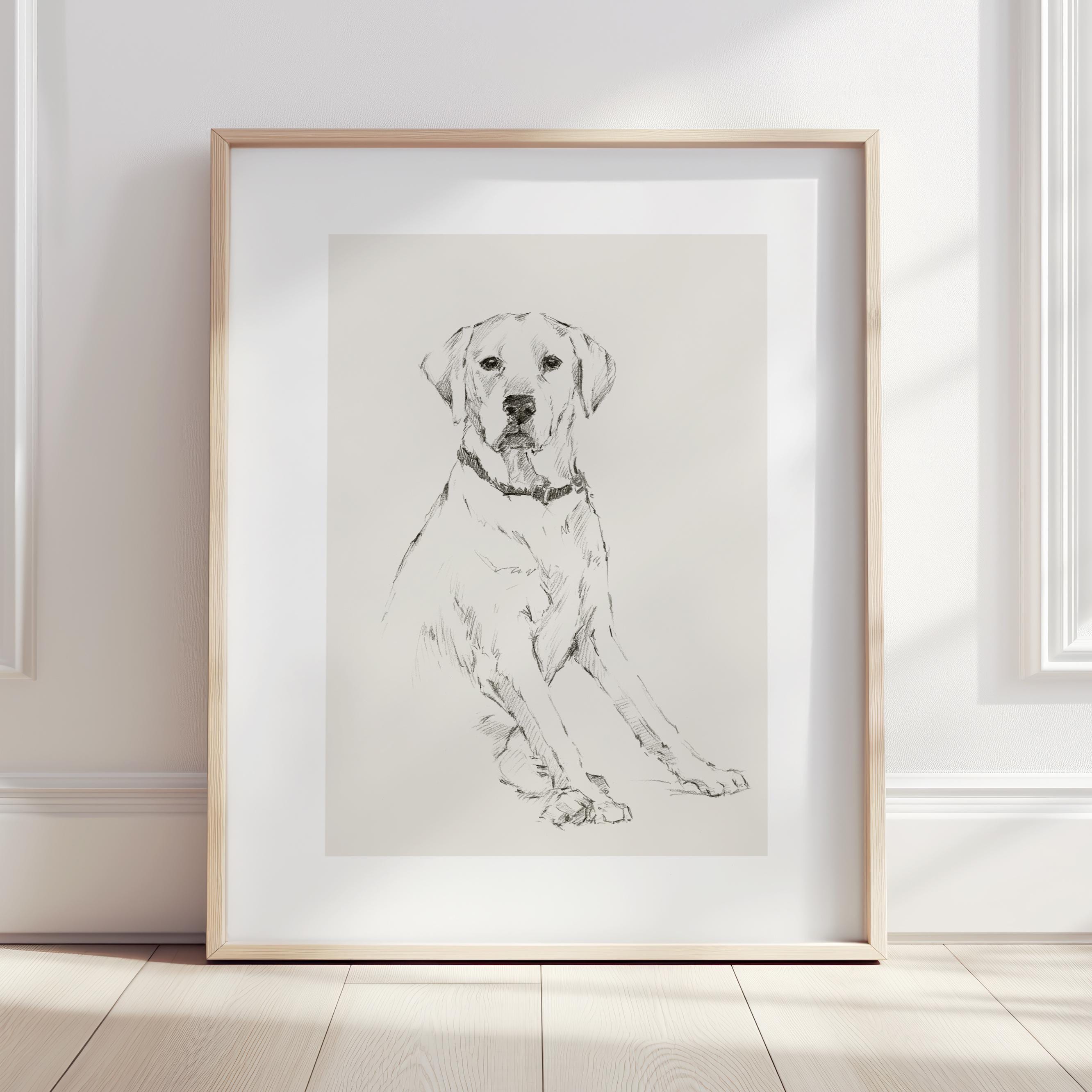 Enhance your home, nursery, or office with this sophisticated piece of animal art that captures the peaceful and endearing spirit of a Labrador Retriever. Perfect as a gift for dog lovers, pet memorials, or to elevate your nursery or living space with a touch of traditional, timeless art. Add this charming pencil sketch to your collection today and bring a bit of canine serenity into your environment!