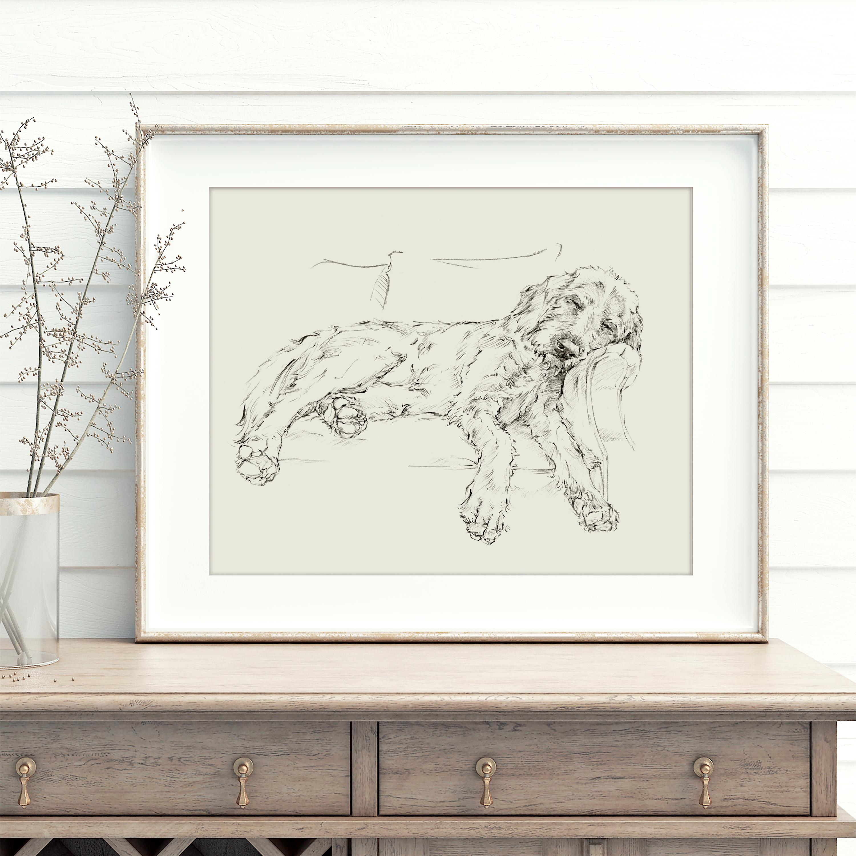 Enhance your home, nursery, or office with this sophisticated piece of animal art that captures the peaceful and endearing spirit of a sleeping Goldendoodle. Perfect as a gift for dog lovers, pet memorials, or to elevate your nursery or living space with a touch of traditional, timeless art. Add this charming pencil sketch to your collection today and bring a bit of canine serenity into your environment!