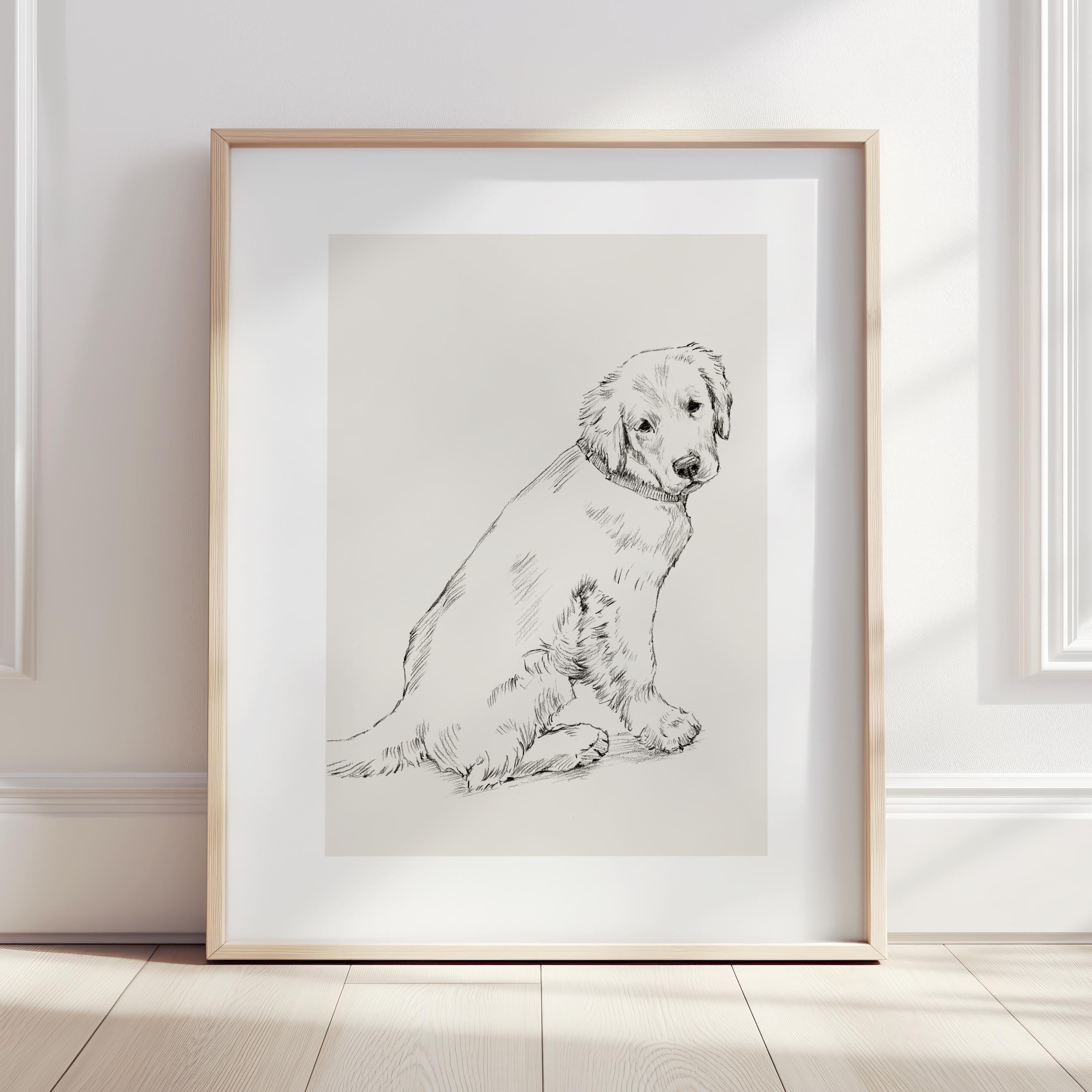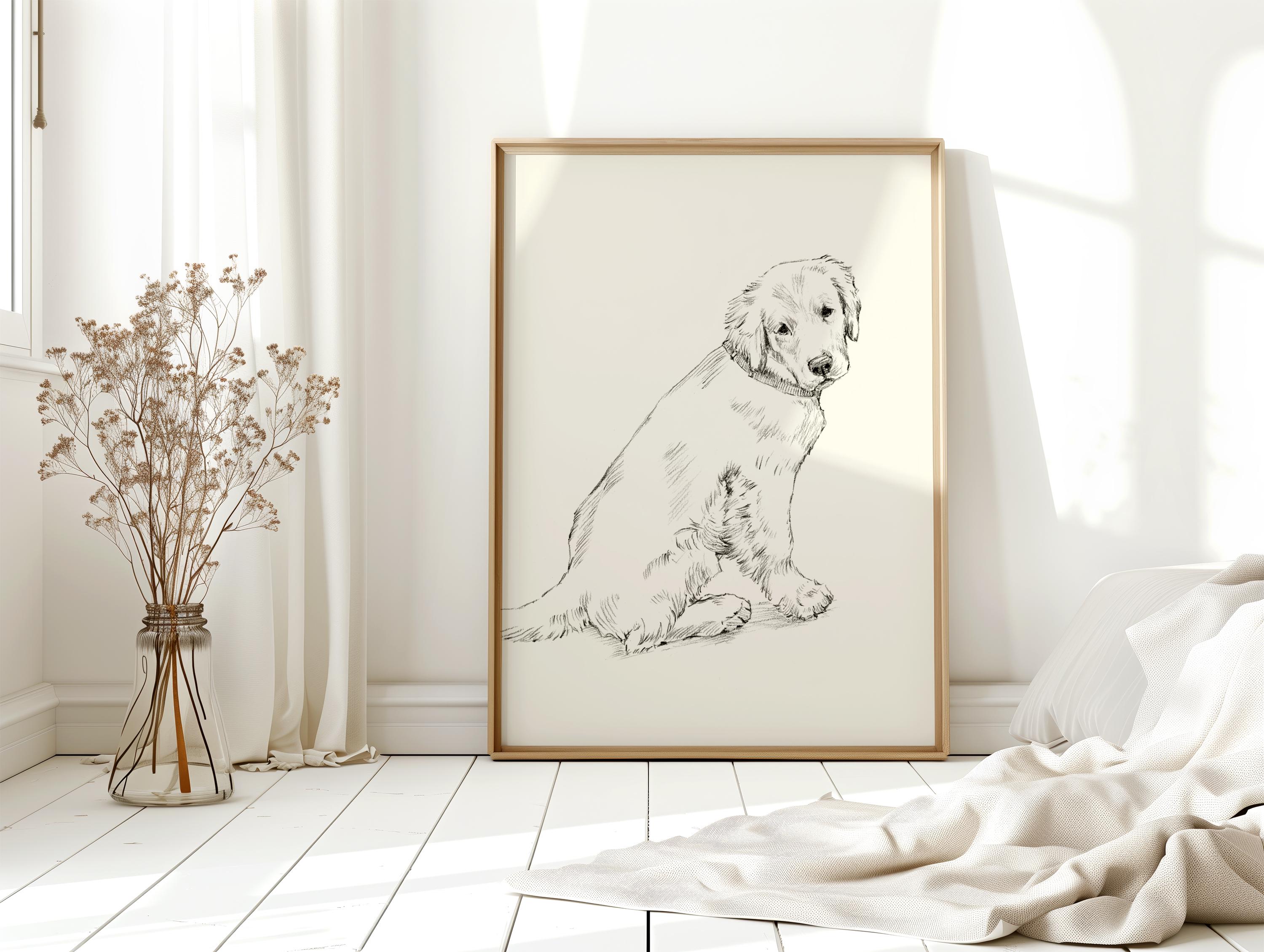 This print features an adorable golden retriever puppy in a rare moment of calm before some sort of inevitable mischief! This is an Open Edition print by artist Ethan Harper