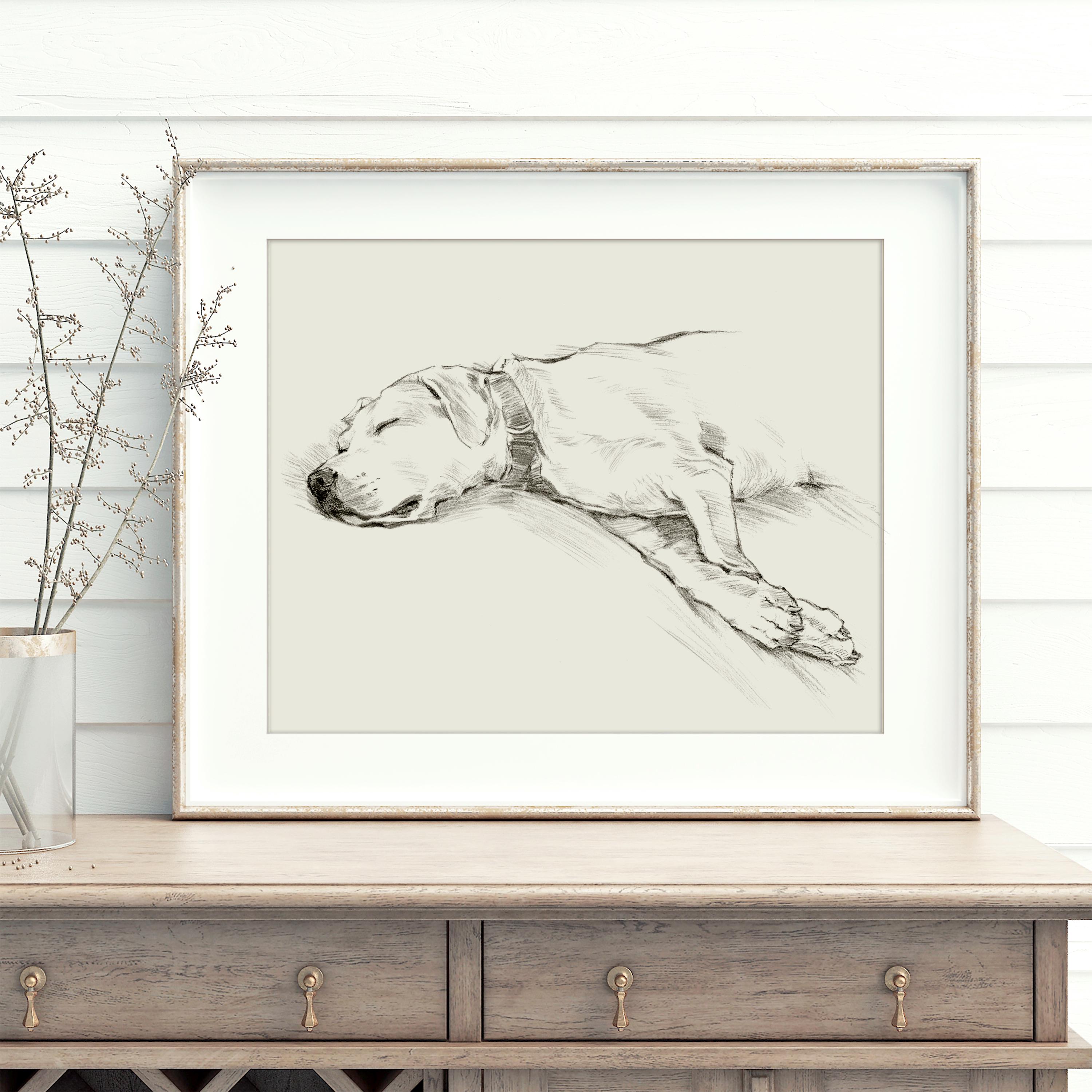 This charming yellow Labrador Retriever sketch captures a peaceful sleeping dog, perfectly suited for nursery and home wall decor. Ethan Harper’s authentic line work brings warmth and calm to any space, making this artwork a unique and heartfelt addition to your collection.