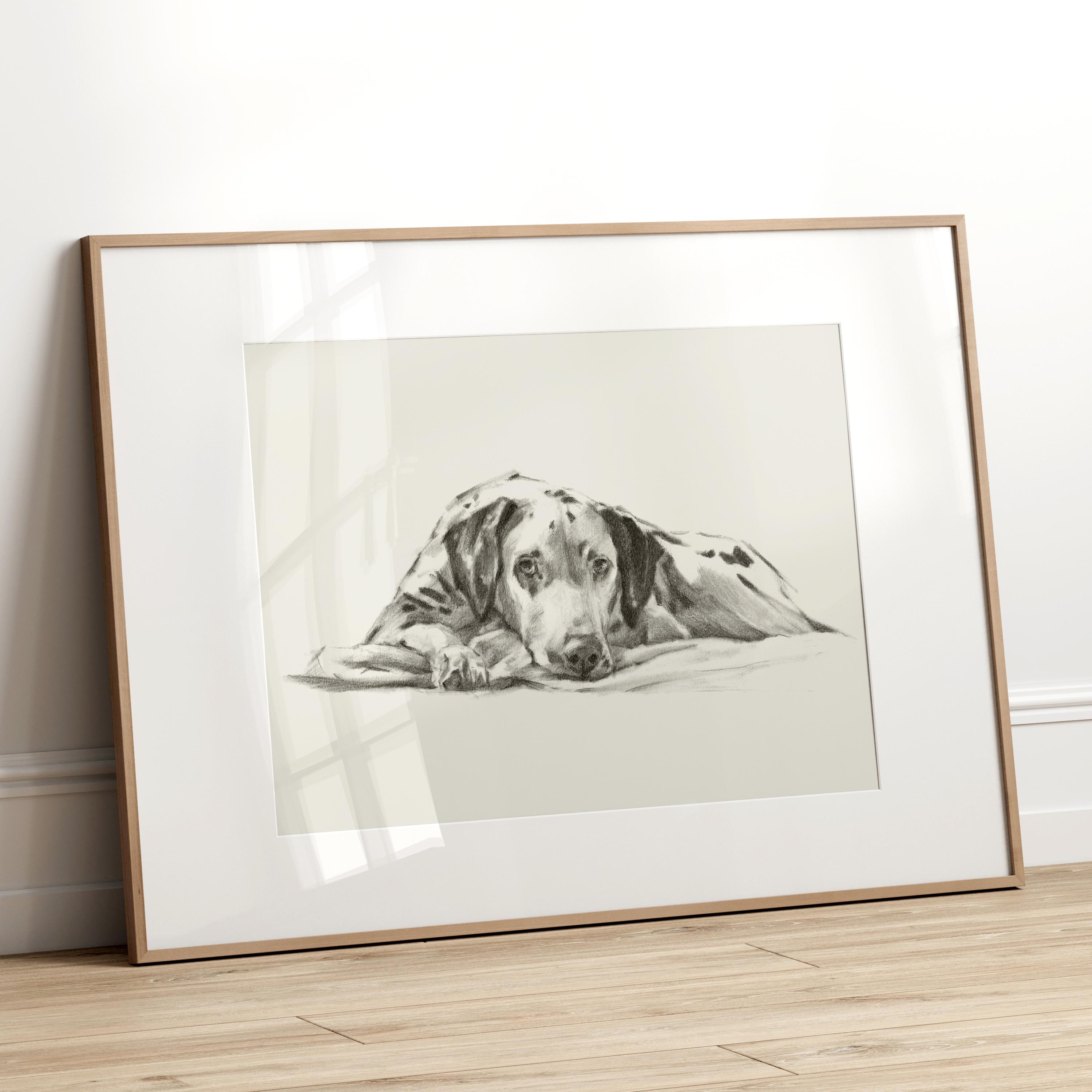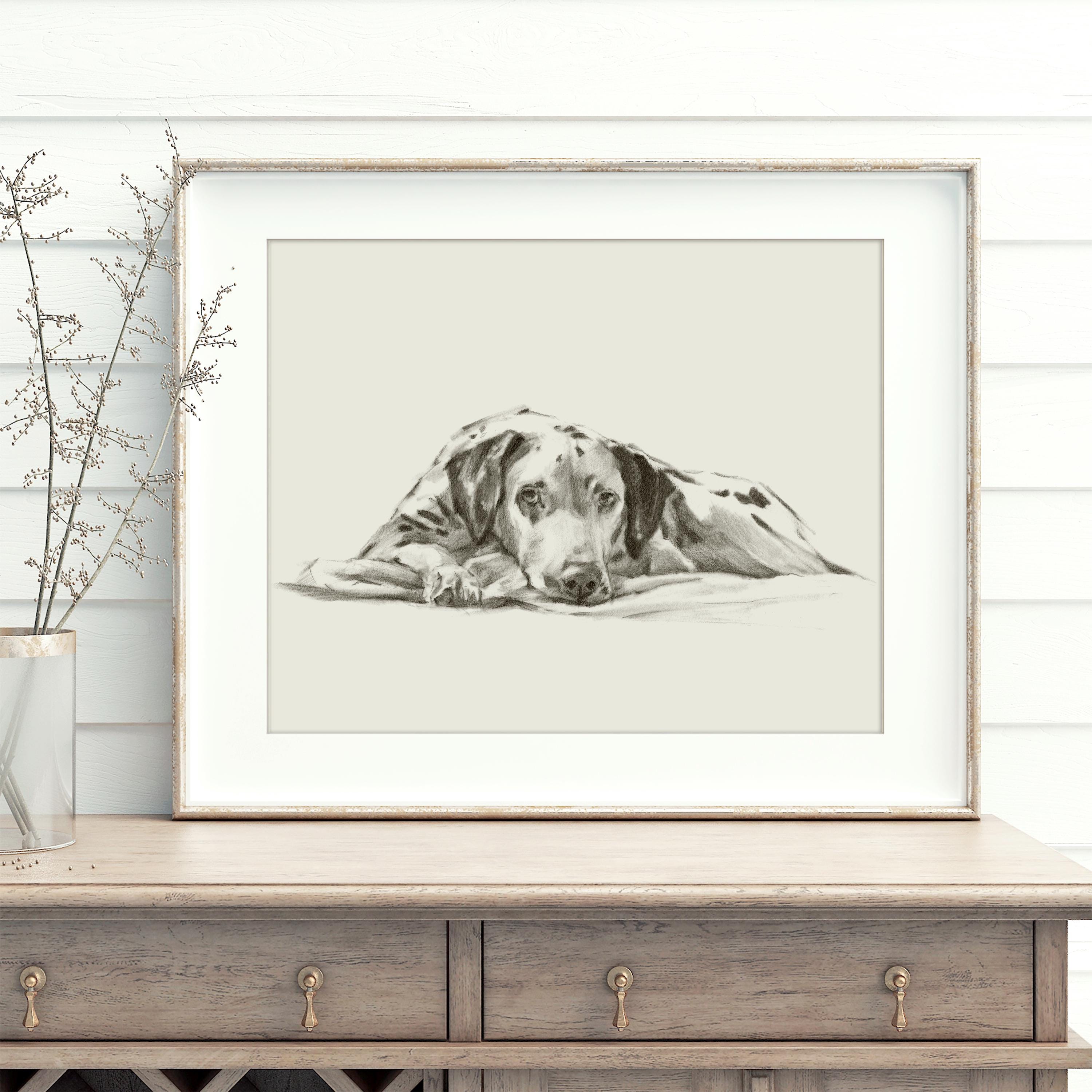 Celebrate your love for dogs with this charming Dalmatian Fine Art Print, expertly reproduced from an original charcoal drawing by Ethan Harper. This stunning pet wall decor captures a peaceful, sleepy Dalmatian in a gentle nap, beautifully showcasing the relaxed and lovable nature of this breed. Perfect for dog lovers, pet parents, or anyone looking to add a cozy, artistic touch to their nursery, living space, or office space.