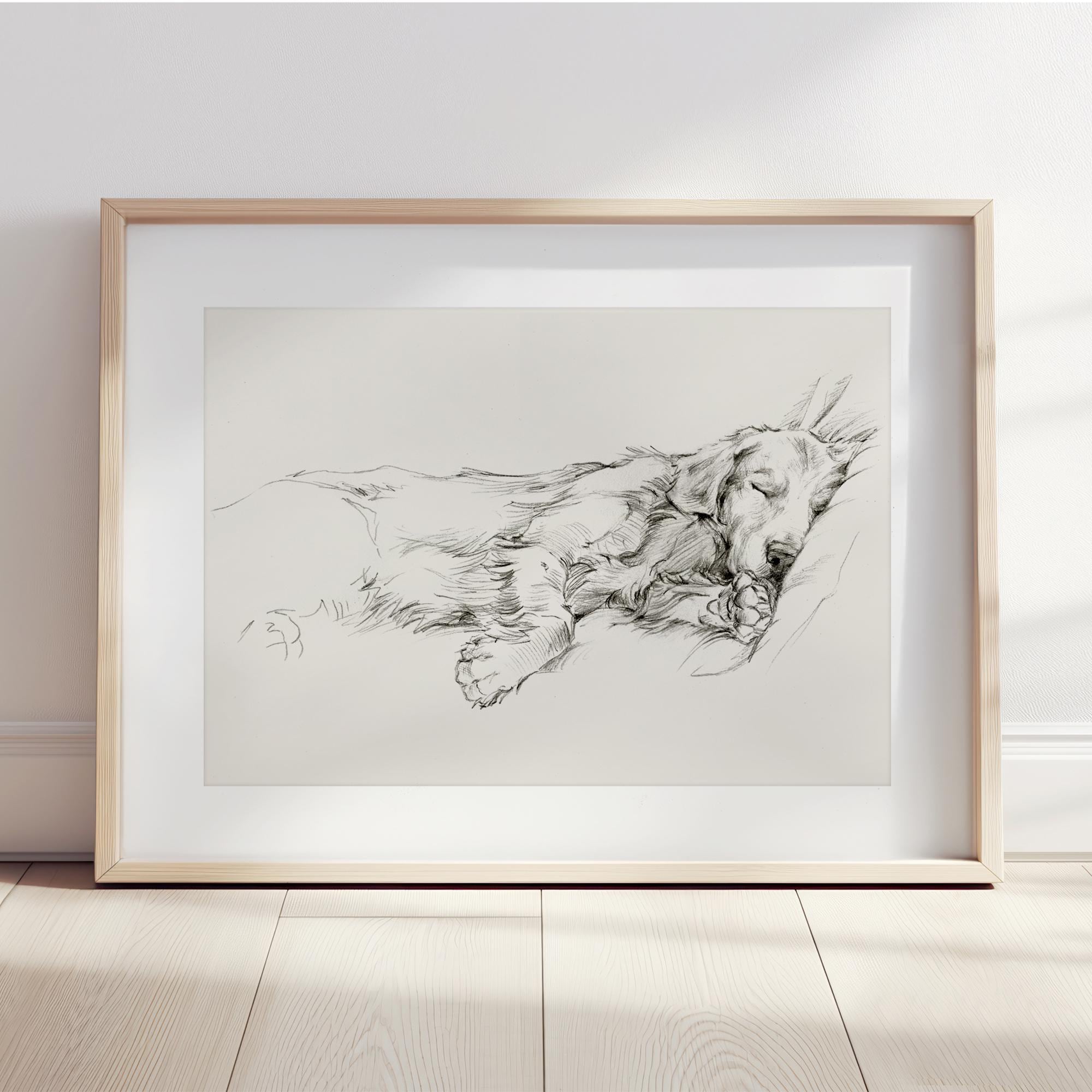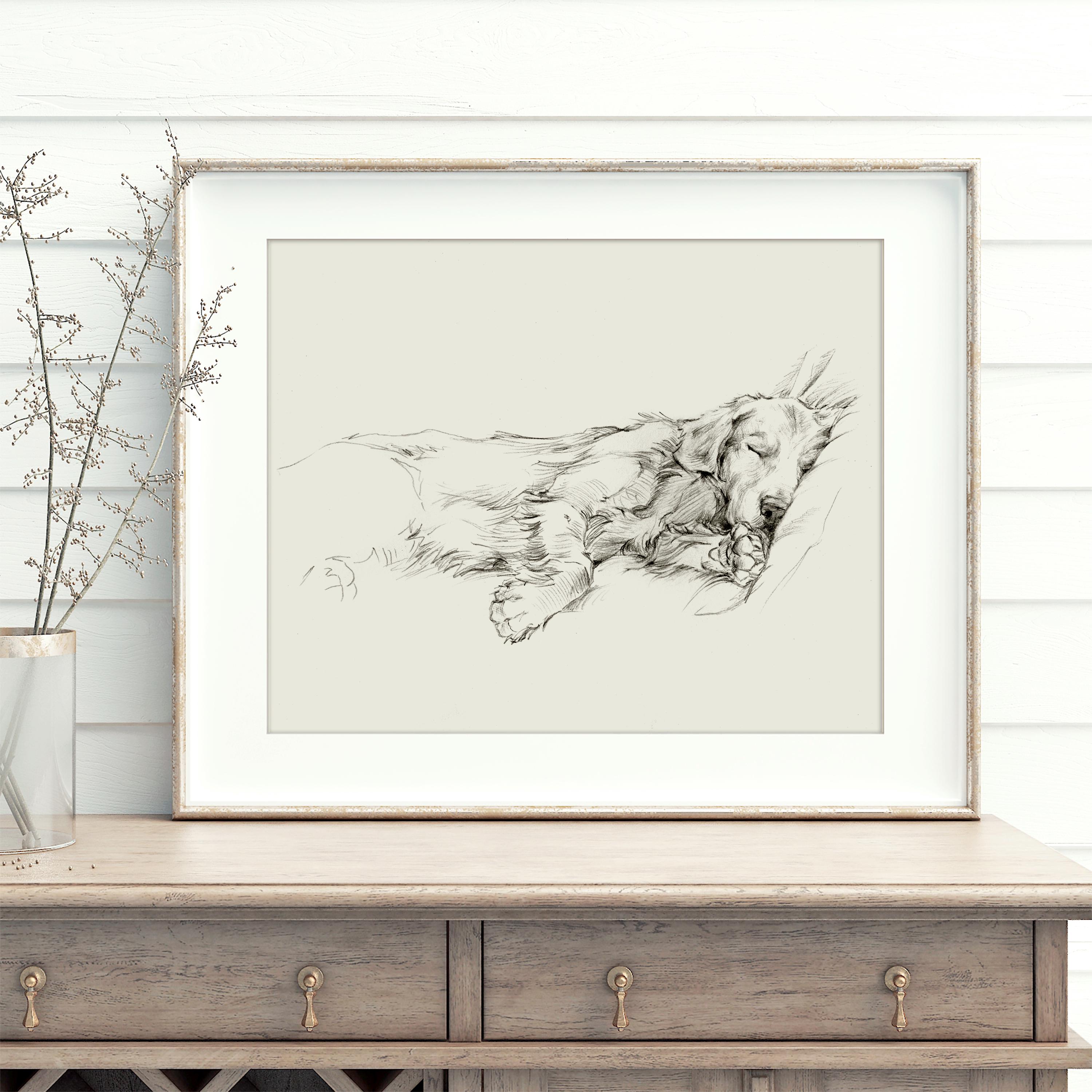 Capture the warmth and charm of your favorite companion with this exquisite golden retriever art print, titled "Dog Days", by Ethan Harper, featuring a finely detailed sketch that highlights the breed’s gentle expression and flowing fur. This elegant dog sketch brings a timeless, artistic touch to any room, setting it apart as a heartfelt pet portrait and a unique gift for dog lovers.